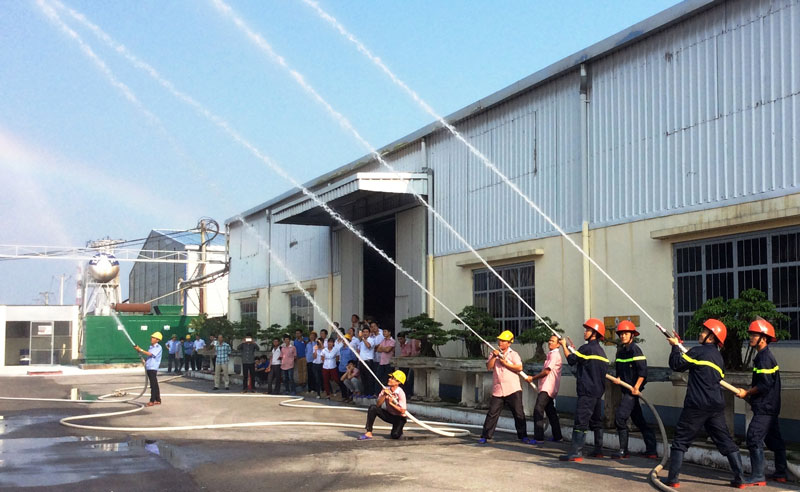 Thực hành chữa cháy trong tình huống giả định tại Công ty Cổ phần Đông Bình