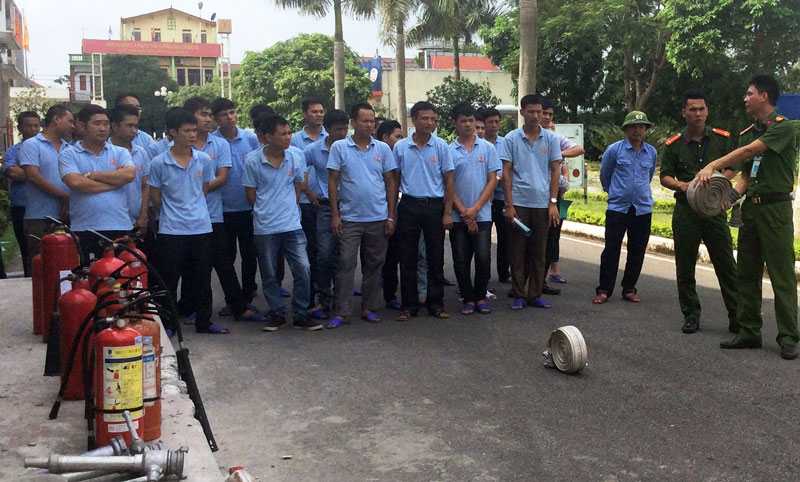 Công ty Cổ phần Đông Bình phối hợp với lực lượng cảnh sát PCCC tổ tập huấn về công tác PCCC cho công nhân Công ty.