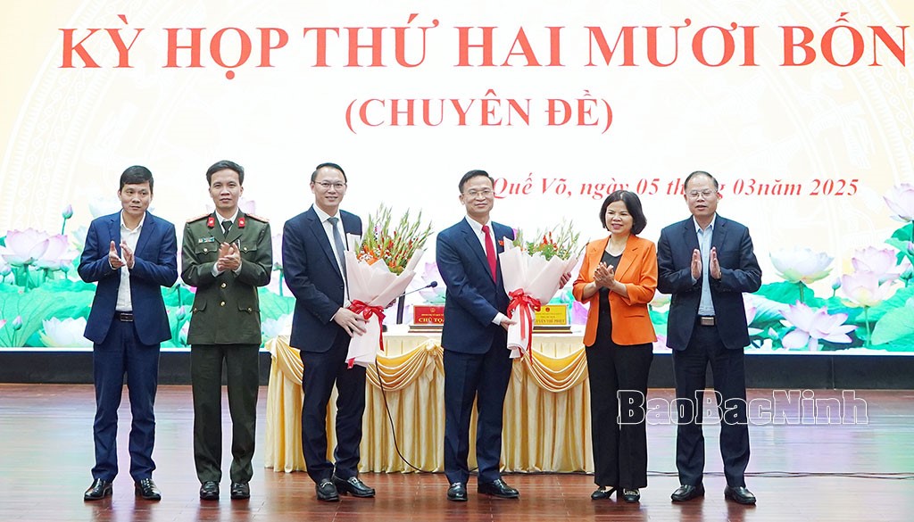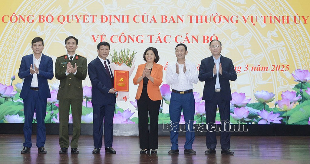 Lãnh đạo Ban Tổ chức Tỉnh ủy công bố Quyết định số 1359-QĐ/TU ngày 27-2-2025 của Ban Thường vụ Tỉnh ủy về việc chuẩn y đồng chí Nguyễn Bá Quân, Ủy viên Ban Thường vụ Thị ủy, Phó Chủ tịch Thường trực UBND thị xã Quế Võ giữ chức Phó Bí thư Thị ủy Quế Võ khóa XIX, nhiệm kỳ 2020-2025; Nghị quyết số 47/NQ-TT.HĐND ngày 18- 2-2025 của Thường trực HĐND tỉnh về việc phê chuẩn kết quả bầu ông Nguyễn Bá Quân, Phó Bí thư Thị ủy Quế Võ giữ chức Chủ tịch HĐND thị xã Quế Võ khóa XX, nhiệm kỳ 2021-2026 kể từ ngày 13-2-2025.