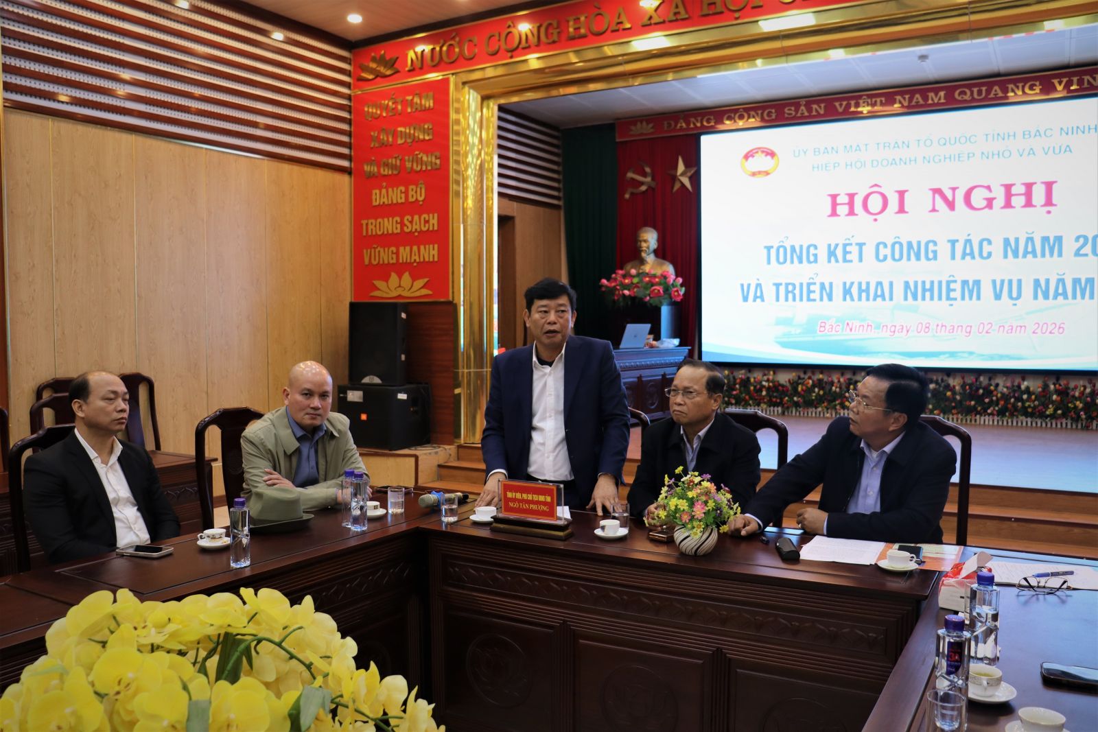 BẮC NINH – Chiều 8/2, Hiệp hội doanh nghiệp nhỏ và vừa tỉnh tổng kết công tác năm 2025, triển khai nhiệm vụ năm 2026. Đến dự có các đồng chí: Nguyễn Công Ngọ, nguyên Bí thư Tỉnh uỷ, Chủ tịch danh dự Hiệp hội; Ngô Tân Phượng, Phó Chủ tịch UBND tỉnh…